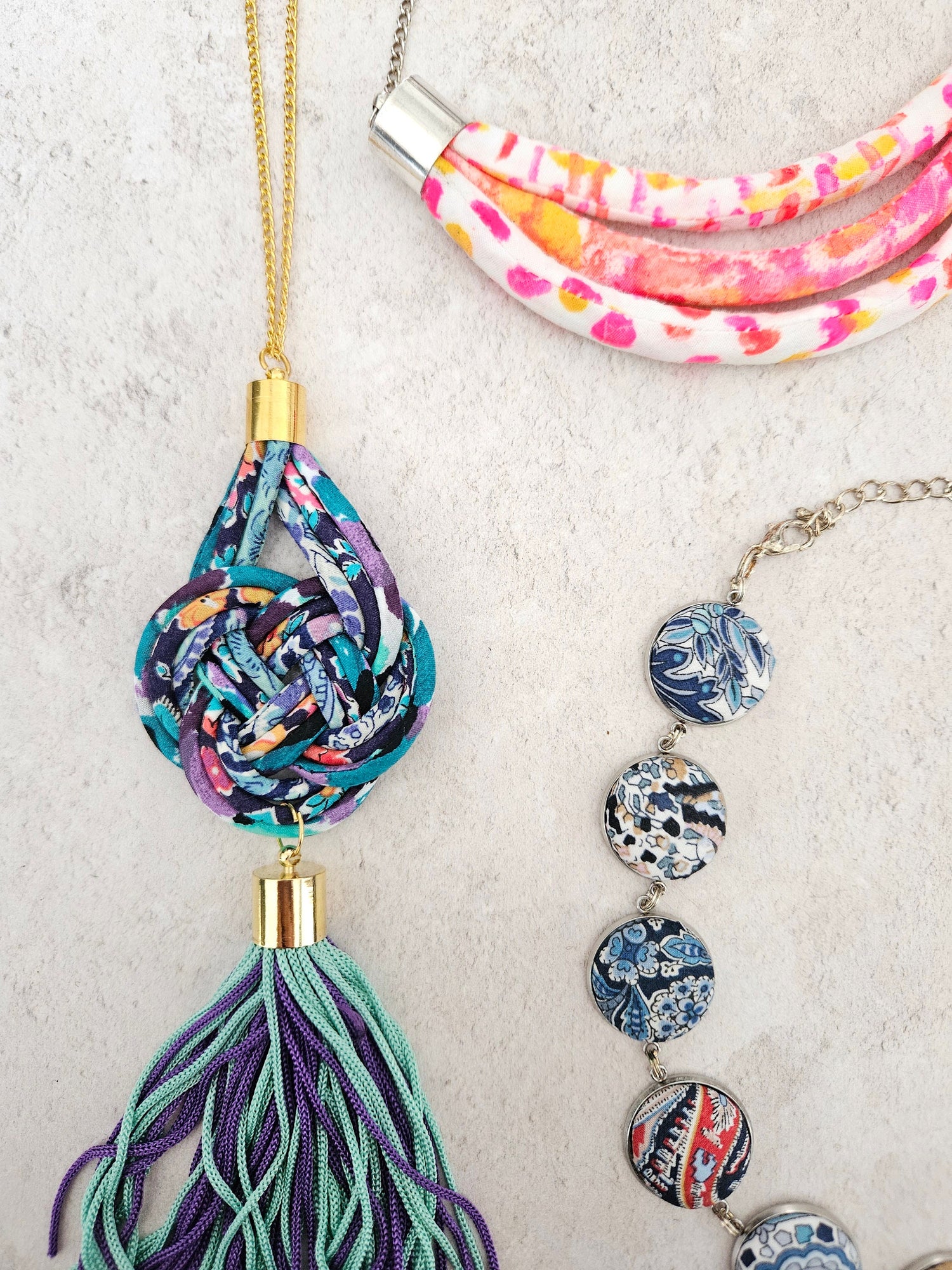 Statement earrings, necklaces and bracelets hand-crafted using genuine Liberty of London Tana...