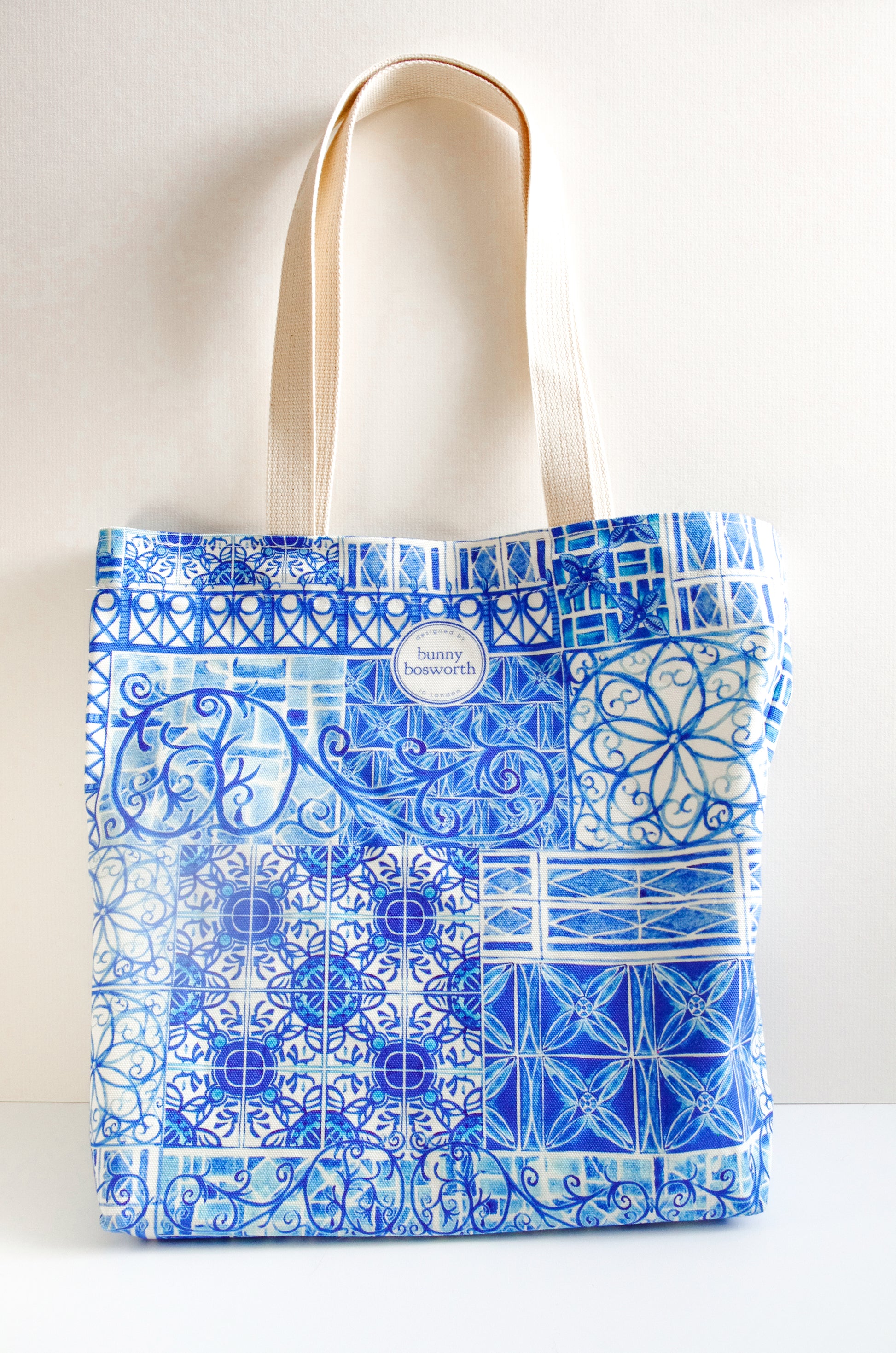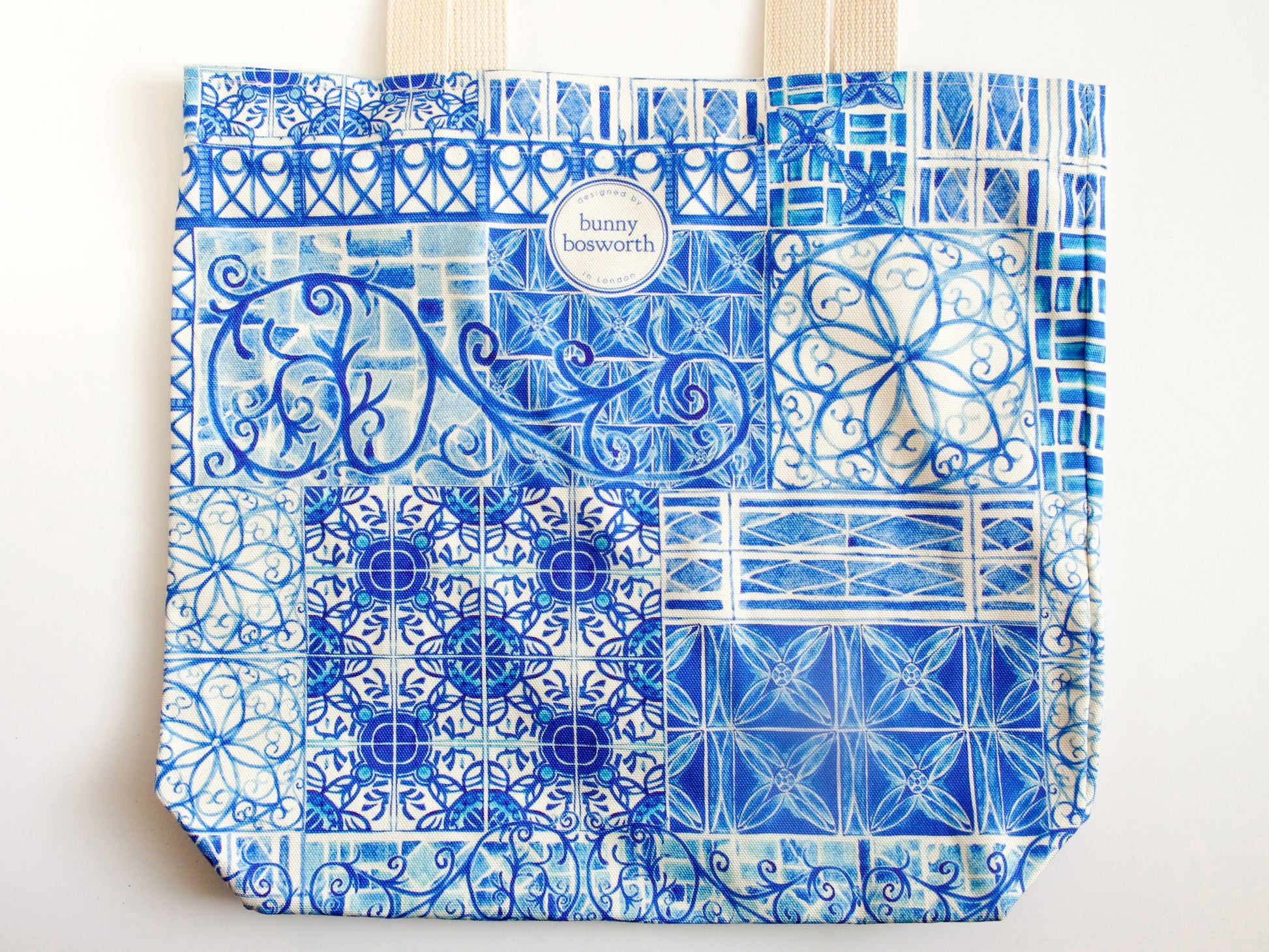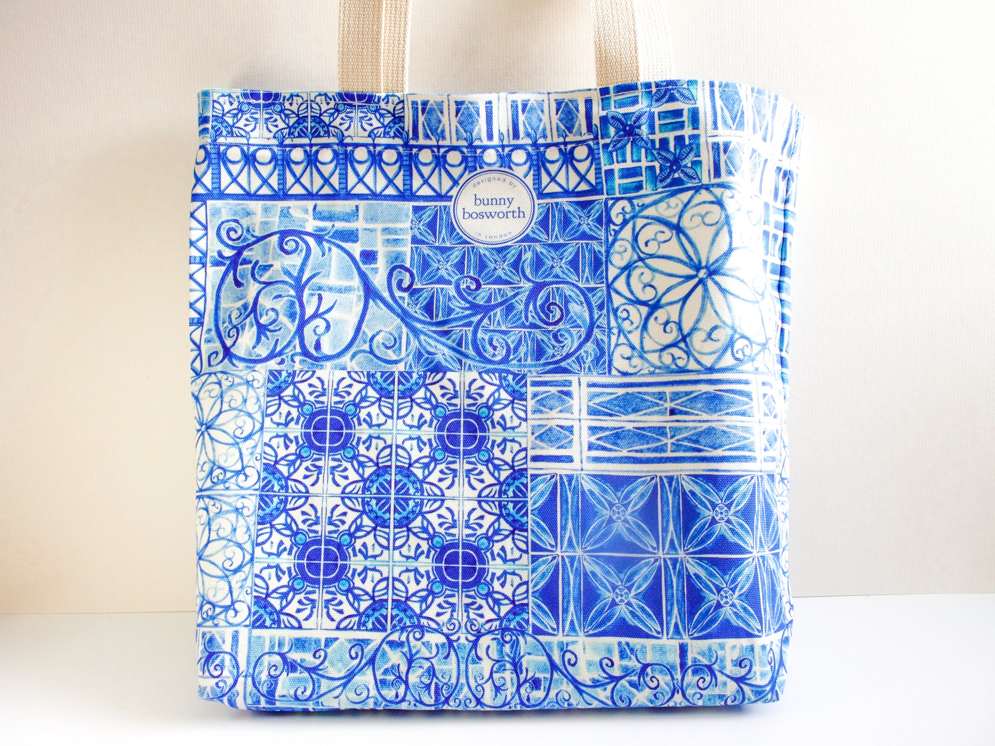 A brand new addition to the Bunny Bosworth range; a heavyweight all-over print half-panama cotton tote bag, sustainably printed with a vibrant blue and white patchwork design, and cut and sewn here in the U.K. Designed to show off the new brilliant blue Brazil inspired prints in a large scale, they are both functional and beautiful.